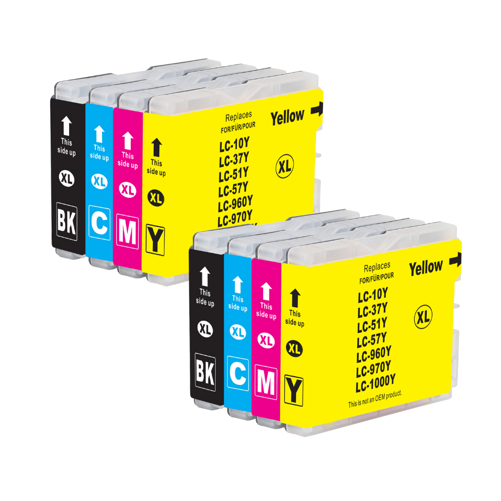 Deze set bevat het volgende2x LC1000 Zwart, alternatieve inktcartridge2x LC1000 Cyaan, alternatieve inktcartridge2x LC1000 Geel, alternatieve inktcartridge2x LC1000 Magenta, alternatieve inktcartridge